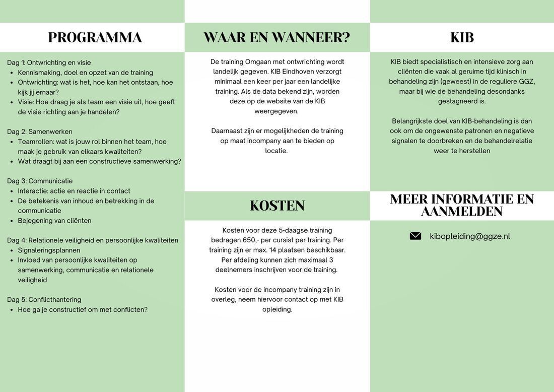 Voor meer informatie en aanmeldingen neem contact op via kibopleiding@ggze.nl